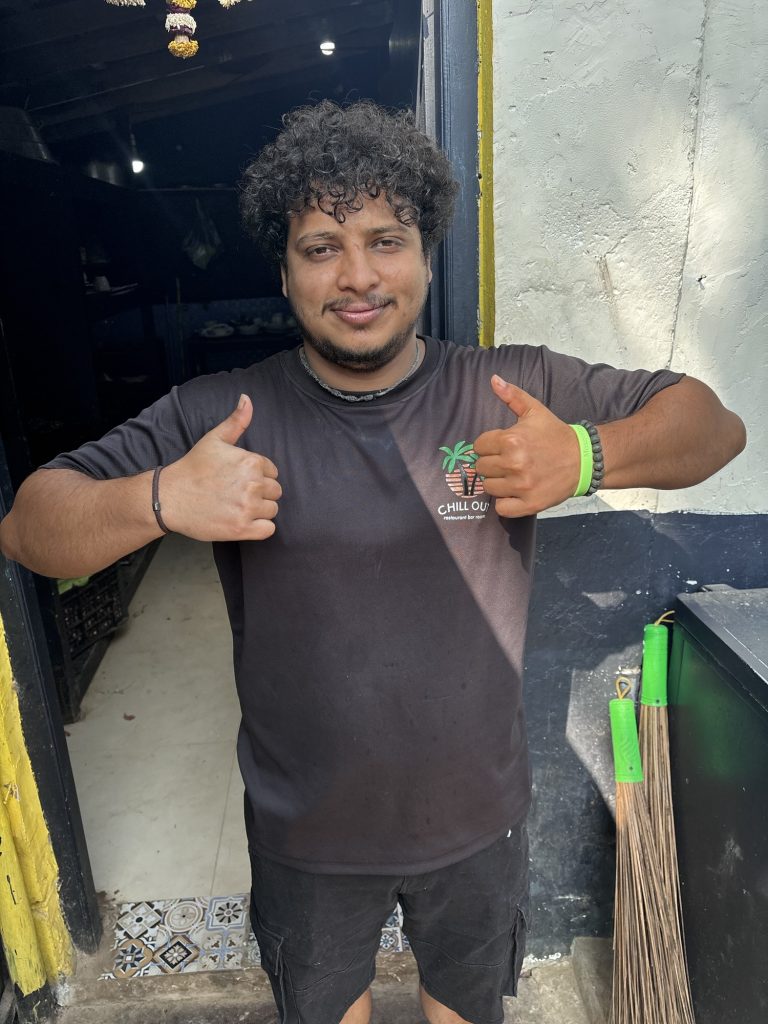 Vi går upp i gryningen för en tidig frukost denna fredagen. Vinkar in en TucTuc som ska ta oss till Patnemstranden.