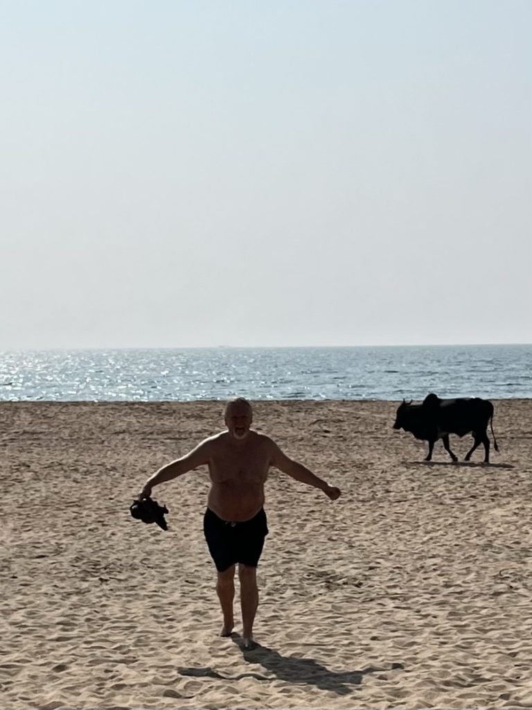 Går på stranden tillbaka, det är mest indiska turister här, många engelsmän. Även många Israeler och vi får veta varför av en svensk vi träffar. När de gjort sin militära tjänstgöring på två år är de lediga 1 år och då väljer många att resa. Problemet är att de inte får visum överallt på grund av kriget men Indien tar emot dom. Svensken, som mött flera av israelerna berättar att de är traumatiserade och mår skit, många röker på vilket vi har uppmärksammat.